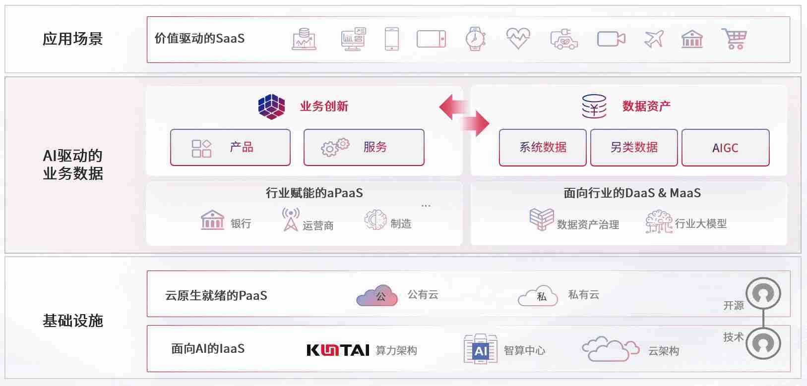 数字时代,,围绕企业数字化转型的关键要素,,,,J9娱乐数码开创性的提出数云融合战略和技术体系框架,,,,着力在云原生、、、数字原生、、、AI原生和信创产业上架构产品和服务能力,,,为处在不同数字化转型阶段的快消零售、、、汽车、、金融、、医疗、、、政企、、教育、、运营商等行业客户提供泛在的敏捷IT能力和融合的数据驱动能力,,,,构建跨界融合创新的数字业务场景和新业务模式,,,,助力企业级客户建立面向未来的核心能力和竞争优势,,,全面推动社会的数字化、、智能化转型升级。。