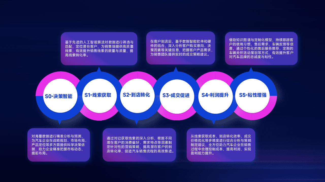 通过拓宽潜在客户来源、、、优化线索分配并提高到店转化率,,,以增强销售效率。。。同时,,利用线索数据不断优化分析模型,,有效提升转化率,,扩大营销影响力。。。